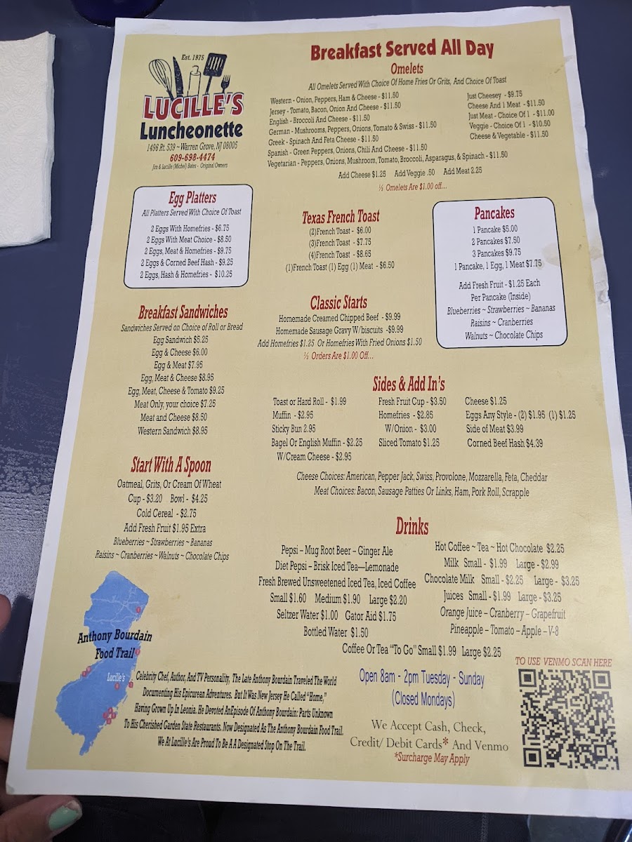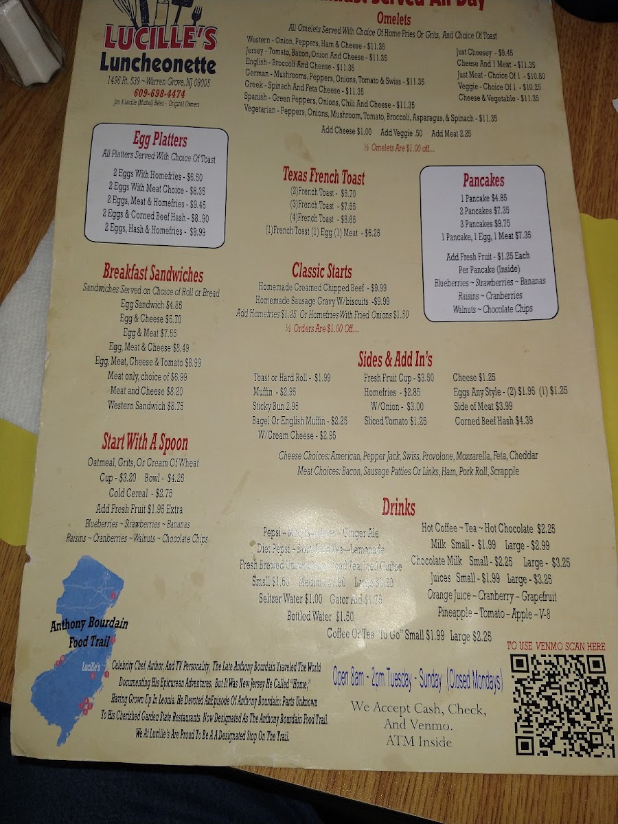 Guests often come for hearty morning favorites such as the Pork Roll and Provolone Omelette or the Biscuits and Gravy, alongside seasonal touches like Strawberry Almond Pancakes or the French Toast Special. The menu also features a variety of omelettes inspired by regional flavors—including Jersey and Spanish styles—that fit effortlessly with the relaxed and homey atmosphere. For those looking for something savory beyond breakfast, options like the Meatloaf Sandwich and French Dip provide a comforting midday choice.