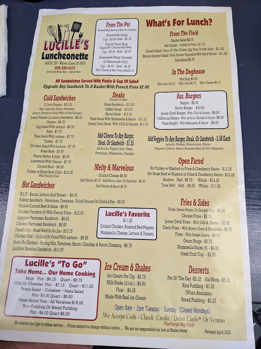 Lucille's Country Cooking offers a menu rooted in classic breakfast and comfort food, perfect for starting the day or enjoying a cozy lunch. The style is straightforward and unpretentious, with dishes that feel familiar and satisfying in a welcoming, small-town setting.